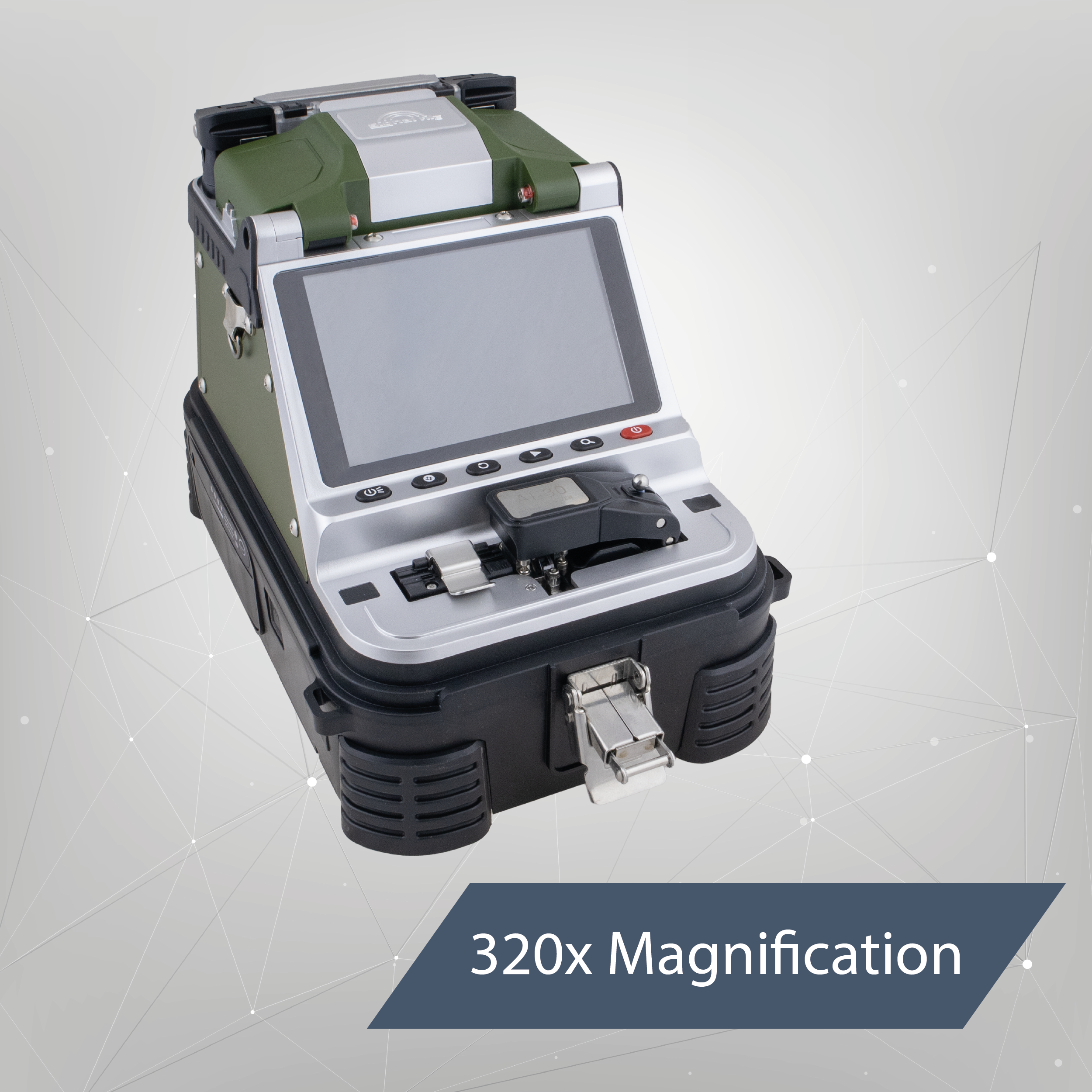 AI-30 posiada wbudowany miernik mocy optycznej oraz wizualny lokalizator uszkodzeń. Złącza znajdują się z boku obudowy, w łatwo dostępnym miejscu. Miernik obsługuje fale o długości 850, 1300, 1310, 1490, 1550 i 1625 nm, umożliwi przeprowadzenie podstawowej diagnostyki po wykonaniu spawów. Wizualny lokalizator uszkodzeń cechuje się mocą 15 mW, narzędzie pozwoli ci sprawdzić ciągłość włókna na krótką odległość.