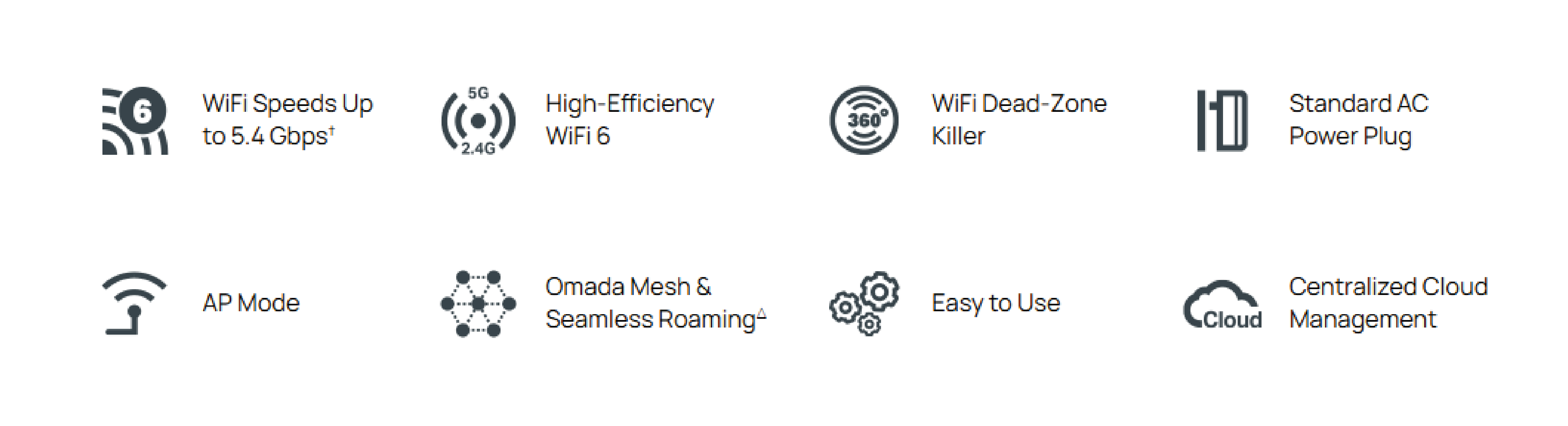 Bezpieczeństwo transmisji bezprzewodowej | Uwierzytelnianie przy pomocy strony powitalnej§ Kontrola dostępu Filtrowanie bezprzewodowych adresów MAC Izolacja klientów połączonych z siecią bezprzewodową VLAN Wykrywanie nieautoryzowanych AP Obsługa 802.1X WPA-Personal/Enterprise, WPA2-Personal/Enterprise, WPA3-Personal/Enterprise |