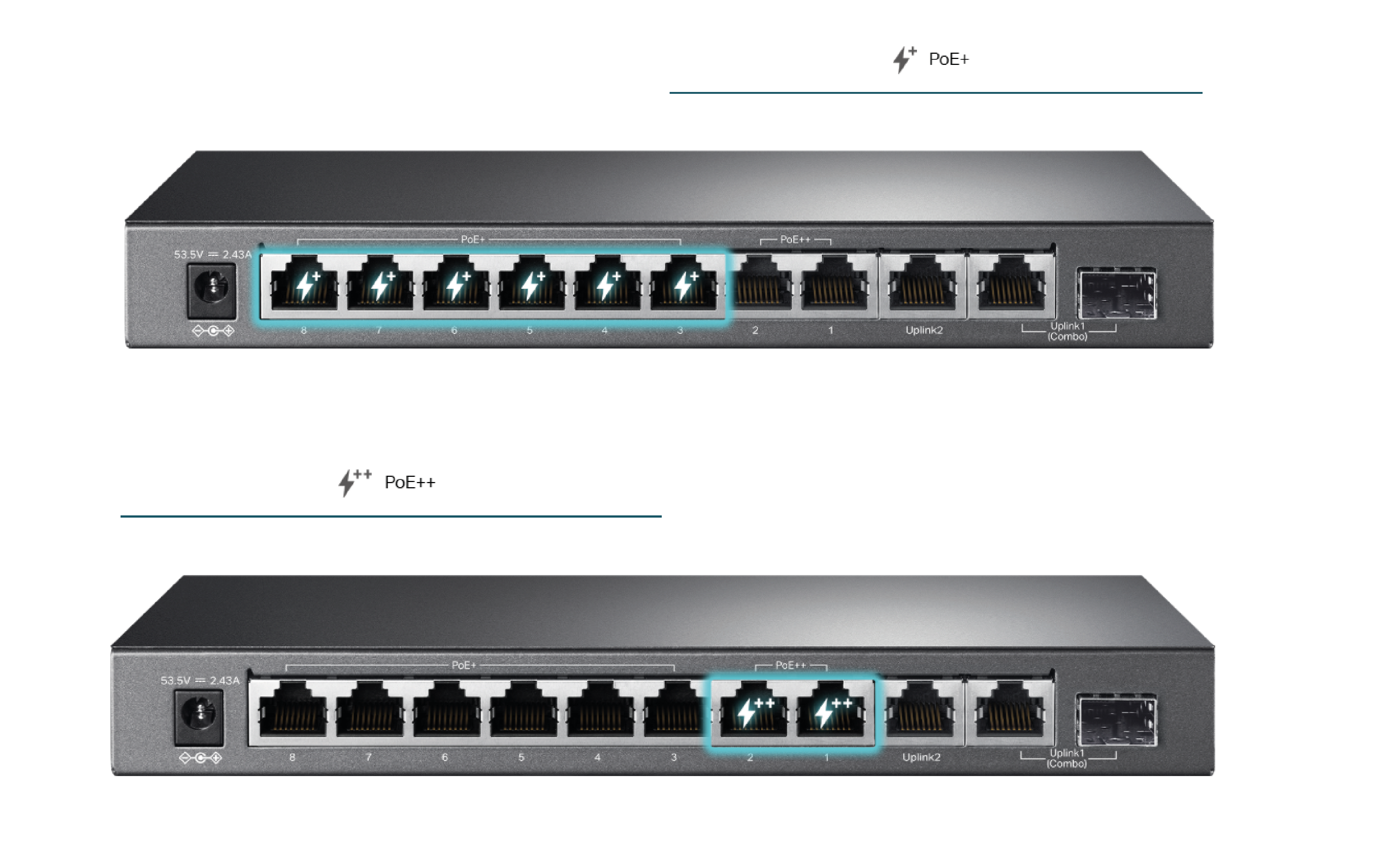 Przełącznik TL-SG1210PP zgodny ze standardami PoE IEEE 802.3af/at/bt, oferuje łączne zasilanie PoE do 123W (do 30W na portach PoE+ i do 60W na portach PoE++). Gdy przekroczona zostanie całkowita moc 123W, wtedy funkcja inteligentnego zarządzania energią wyłączy zasilanie portów o niższym priorytecie, aby uchronić urządzenia przed uszkodzeniami.