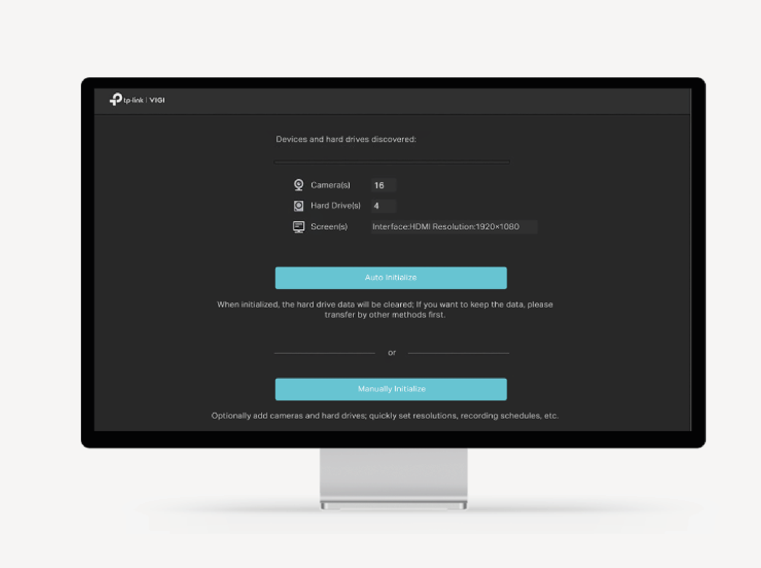 Wystarczy kliknąć "Automatyczna inicjalizacja", aby skonfigurować podstawowe parametry kamery i dysku twardego, znacznie skracając czas potrzebny na konfigurację.