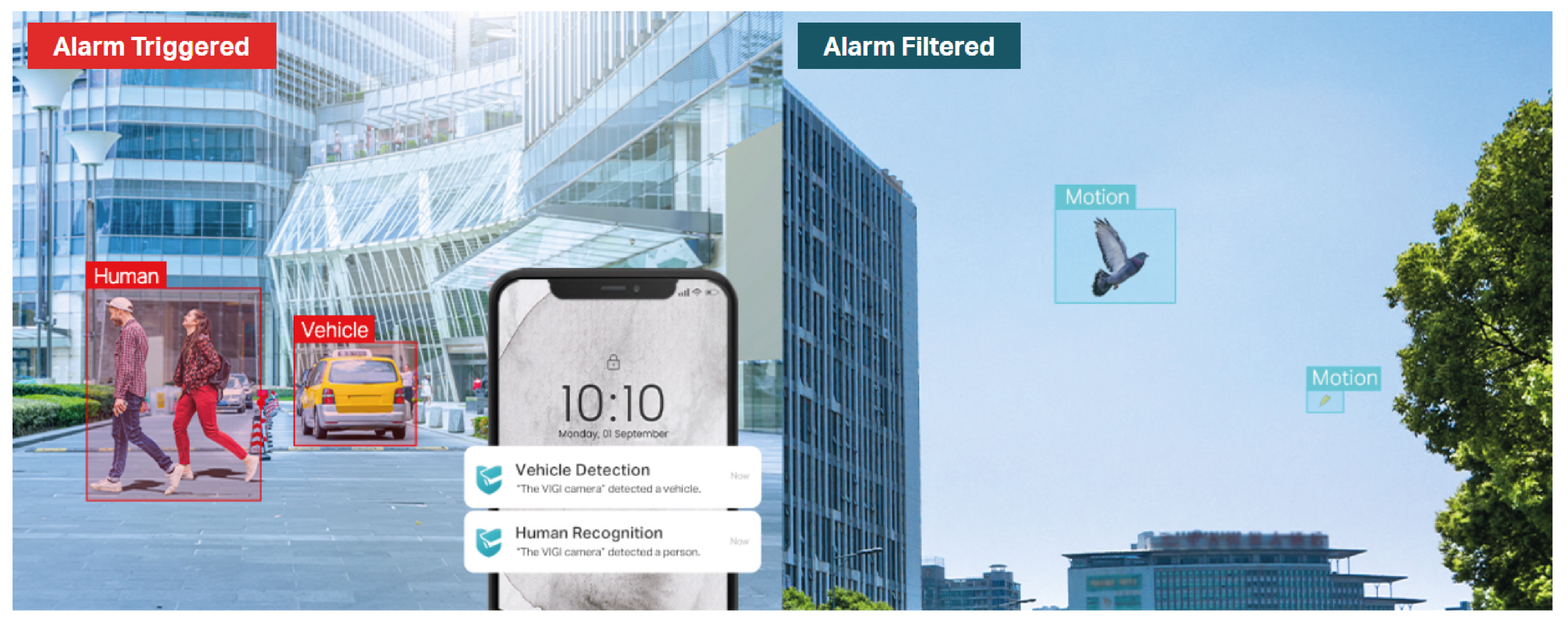 Kamera rozróżnia ludzi i pojazdy od innych obiektów, dzięki czemu możesz otrzymywać dokładniejsze powiadomienia o zdarzeniach.