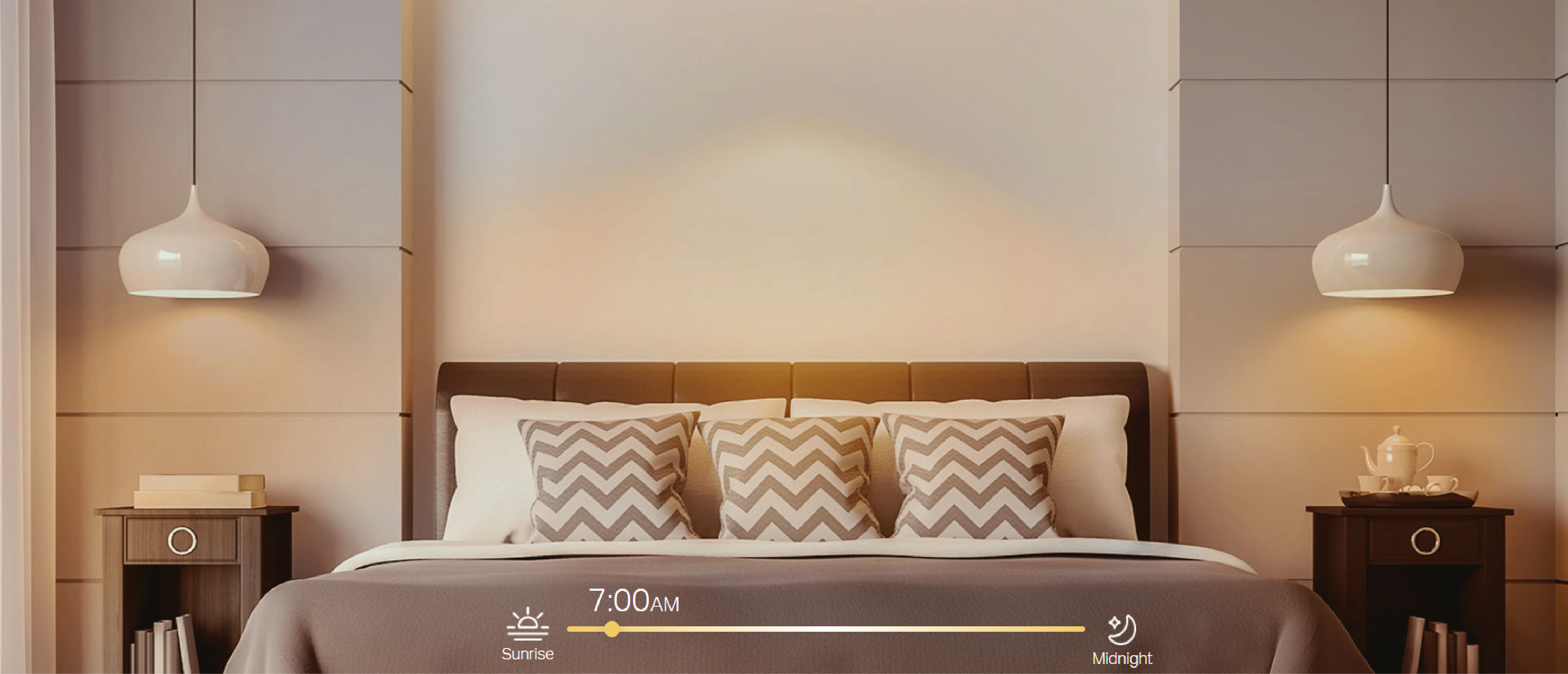 Ustaw oświetlenie na ciepłą biel (2500K) wieczorem aby zapewnić sobie spokojny sen, bądź chłodną biel (6500K), gdy pracujesz lub potrzebujesz porannego zastrzyku energii.