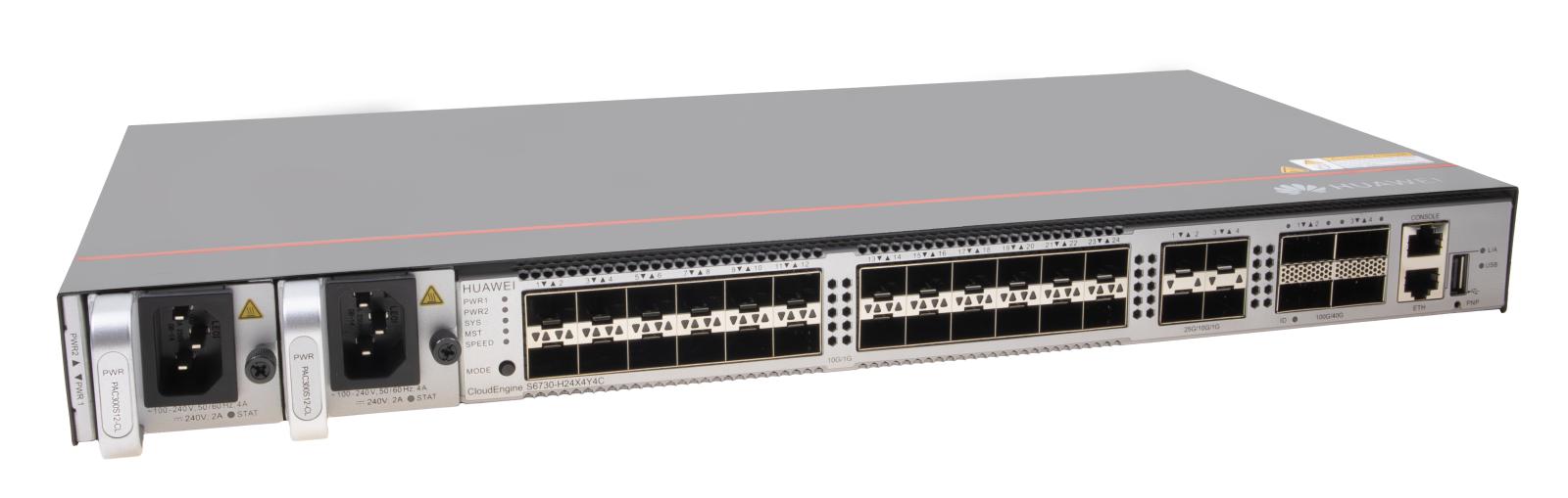 Huawei CloudEngine S6730-H24X4Y4C to zarządzalny switch klasy Enterprise. Został wyposażony w 24 sloty SFP+ (10 Gb/s), 4 sloty SFP28 (25 Gb/s) oraz 4 sloty QSFP28 (100 Gb/s). Pozwoli obsłużyć bardzo dużą przepustowość i stworzyć szkielet sieci w oparciu o prędkość 10 Gb/s. Zapewnia liczne funkcje zarządzania w warstwie Layer 3 takie jak routing, VRF, RIPv1 / RIPv2, OSPF czy BGP. Umożliwia stackowanie wirtualne z wykorzystaniem SVF (Super Virtual Fabric) oraz logiczne stackowanie - iStack. Stackowanie pozwoli ci połączyć wiele urządzeń w jedno, co znacznie ułatwia późniejsze zarządzania całą siecią. Huawei z S6730-H zastosował liczne nowoczesne zabezpieczenia, m. in. SEP (Smart Ethernet Protection) i ERPS (Ethernet Ring Protection Switching). Obsługuje MACsec - przesyłane ramki Ethernet są szyfrowane, a podczas uwierzytelniania switch sprawdza integralność danych i znacznie redukuje możliwość wprowadzenia złośliwego oprogramowania. Oferowany produkt jest wyposażony w dwa moduły zasilające PAC300S12-CL, nominalne napięcie wejściowe wynosi 100 - 240 V AC, a moc 300 W. Oba moduły pracują w trybie backup 1 + 1, w przypadku awarii jednego pracę podejmuje drugi.