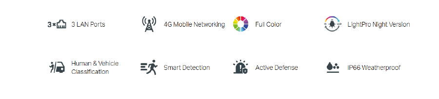 Kamera InSight S345-4G oferuje 3 porty LAN, dzięki którym możliwe jest podłączenie nawet 3 dodatkowych urządzeń. Jest to idealne rozwiązanie do połączenia z systemem zasilania energią słoneczną, aby wyeliminować potrzebę stosowania dodatkowego okablowania.