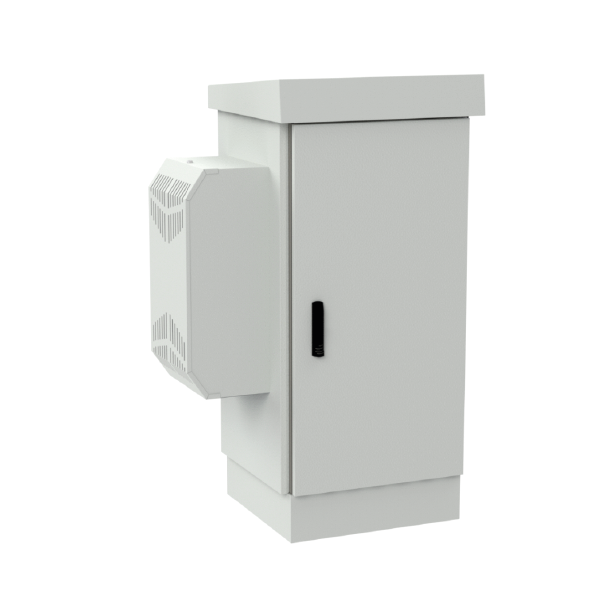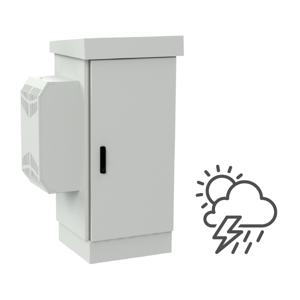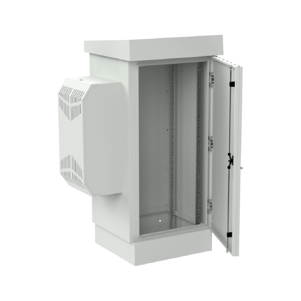 Szafa ma konstrukcję dwupłaszczową - posiada podwójne ściany, pomiędzy nimi znajduje się powietrze, które jest dodatkowym izolatorem termicznym chroniącym sprzęt znajdujący się wewnątrz. Wraz z produktem otrzymasz zintegrowany klimatyzator o mocy 720 W. Klimatyzator umożliwia schłodzenie wnętrza szafy, zapobiega przegrzewaniu się urządzeń oraz wydłuża ich żywotność.