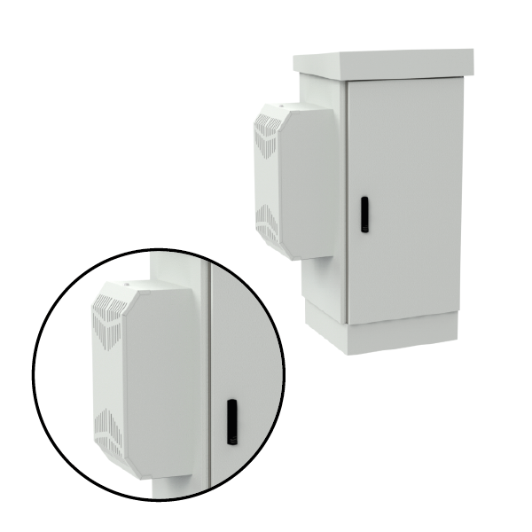 Dzięki zastosowaniu klimatyzatora szafa nie posiada otworów wentylacyjnych w dolnej części (w przeciwieństwie do standardowych, zewnętrznych szaf wolnostojących) co przekłada się na stopień ochrony IP65, a więc wyższy niż w szafach bez klimatyzacji (IP54). Konstrukcja została zabezpieczona przed wnikaniem wody i pyłów. Jest to szafa wolnostojąca, możesz ją odpowiednio zakotwić do podłoża (np. betonowego) osadzić na studni telekomunikacyjnej lub na postumencie (sprzedawany osobno).