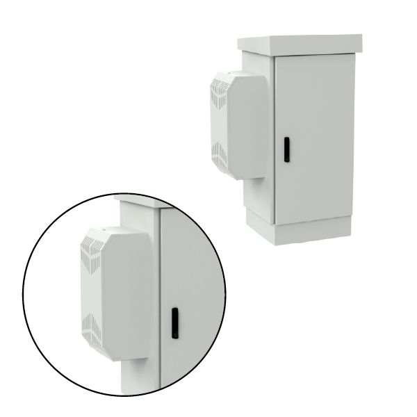 Dzięki zastosowaniu klimatyzatora szafa nie posiada otworów wentylacyjnych w dolnej części (w przeciwieństwie do standardowych, zewnętrznych szaf wolnostojących) co przekłada się na stopień ochrony IP65, a więc wyższy niż w szafach bez klimatyzacji (IP54). Konstrukcja została zabezpieczona przed wnikaniem wody i pyłów. Jest to szafa wolnostojąca, możesz ją odpowiednio zakotwić do podłoża (np. betonowego) osadzić na studni telekomunikacyjnej lub na postumencie (sprzedawany osobno).