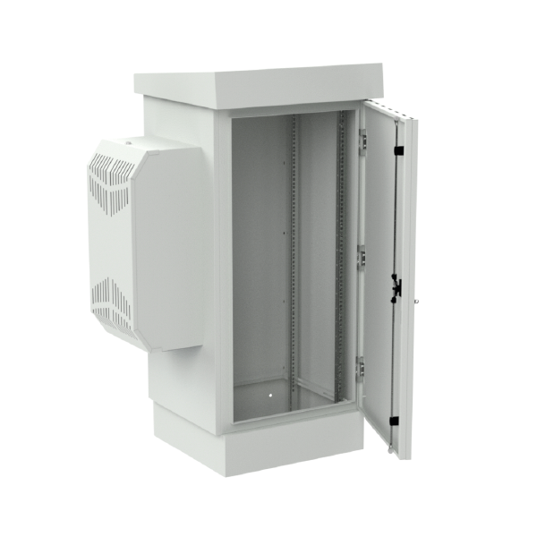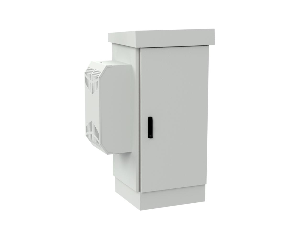 Szafa ma konstrukcję dwupłaszczową - posiada podwójne ściany, pomiędzy nimi znajduje się powietrze, które jest dodatkowym izolatorem termicznym chroniącym sprzęt znajdujący się wewnątrz. Wraz z produktem otrzymasz zintegrowany klimatyzator o mocy 720 W. Klimatyzator umożliwia schłodzenie wnętrza szafy, zapobiega przegrzewaniu się urządzeń oraz wydłuża ich żywotność.