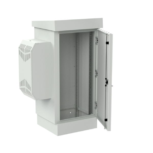 Szafa ma konstrukcję dwupłaszczową - posiada podwójne ściany, pomiędzy nimi znajduje się powietrze, które jest dodatkowym izolatorem termicznym chroniącym sprzęt znajdujący się wewnątrz. Wraz z produktem otrzymasz zintegrowany klimatyzator o mocy 720 W. Klimatyzator umożliwia schłodzenie wnętrza szafy, zapobiega przegrzewaniu się urządzeń oraz wydłuża ich żywotność.