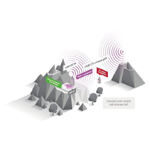 LHGG LTE7 kit posiada zintegrowaną anteną siatkową doskonale znaną z innych urządzeń z serii LHG. Jej zysk energetyczny wynosi 17 dBi, co przekłada się na bardzo dobry zasięg transmisji, znacznie lepszy niż w SXT i nieporównywalny z urządzeniami wyposażonymi w zintegrowane anteny. Oferowany produkt docenią użytkownicy na terenach wiejskich i wszędzie tam, gdzie odległość od stacji bazowej jest znaczna.