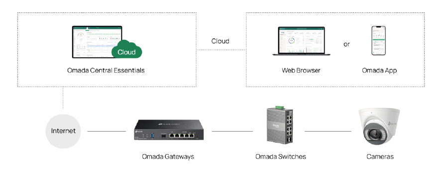 - Bezpłatne, proste i scentralizowane zarządzanie w chmurze przez Omada Central Essentials