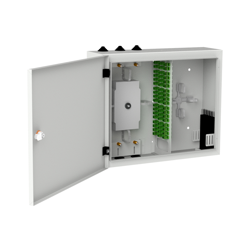 Oferowany produkt to przełącznica dystrybucyjna przeznaczona do montażu naściennego wewnątrz budynków. Z uwagi na rozmiary i pojemność może być stosowana w miejscach, w których zbiega się wiele linii światłowodowych, np. w budynkach wielorodzinnych do podłączania abonentów. Przełącznica jest wykonana z blachy stalowej pokrytej powłoką Magnelis i polakierowana w kolorze jasnoszarnym RAL7035. Producent zastosował pełne, jednoskrzydłowe drzwi zabezpieczone standardowym, piórowym zamkiem. Stopień ochrony wynosi IP41, a odporność mechaniczna IK10.