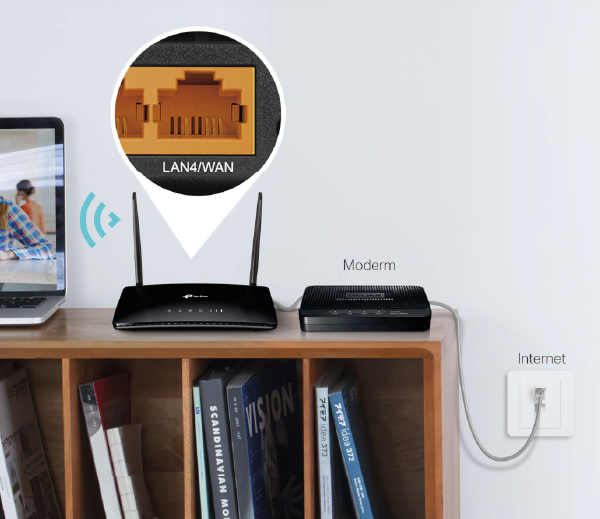 Urządzenie TL-MR6400 wyposażone jest w port WAN/LAN, dlatego może pracować jako router w pełni zgodny z modemem kablowym, światłowodowym i DSL. W trybie routera bezprzewodowego połączenie 3G/4G zapewnia stały dostęp do Internetu, gdy sieć główna ulegnie awarii.
