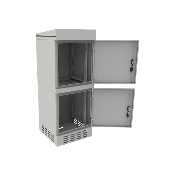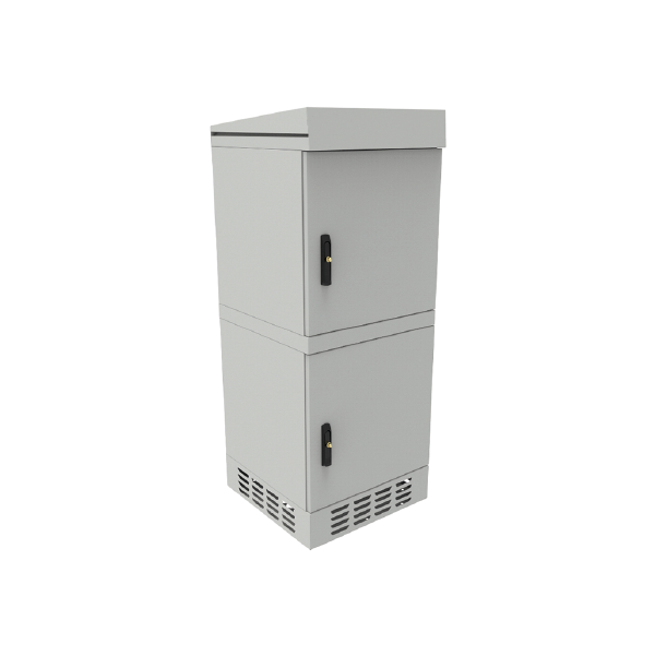 Szafa cechuje się stopniem ochrony IP54, jest przystosowana do wykorzystania na zewnątrz budynków. Konstrukcja jest zabezpieczona przed wnikaniem wody i pyłów. Jest to szafa wolnostojąca, możesz ją odpowiednio zakotwić do podłoża (np. betonowego), osadzić na studni telekomunikacyjnej lub na postumencie (sprzedawany osobno).
