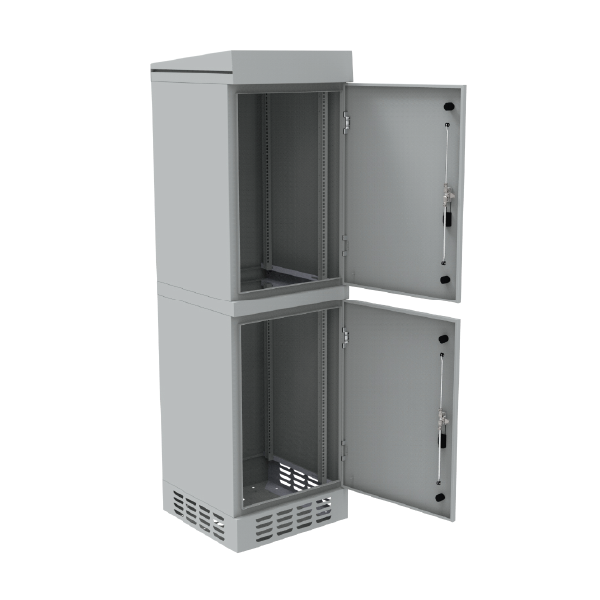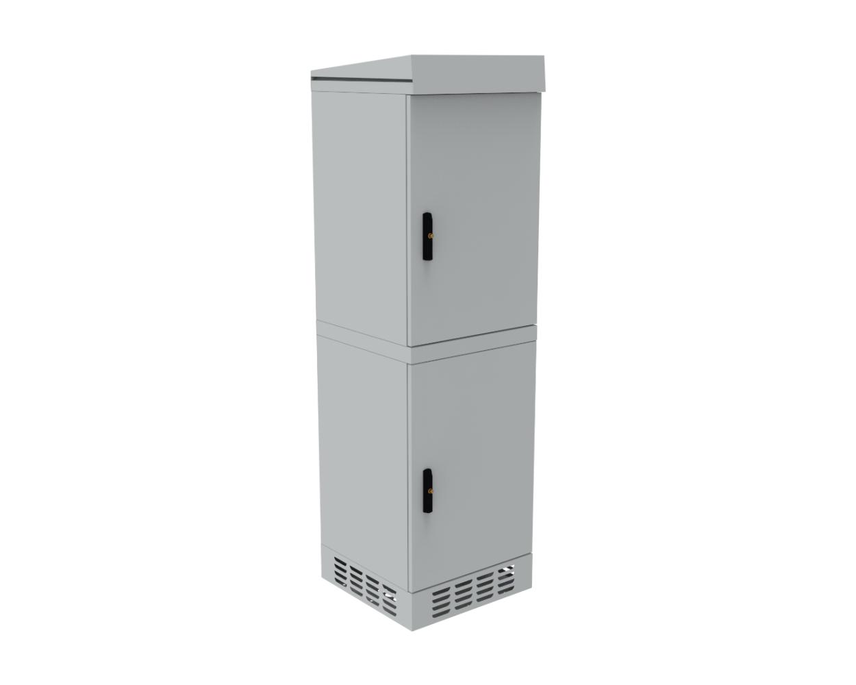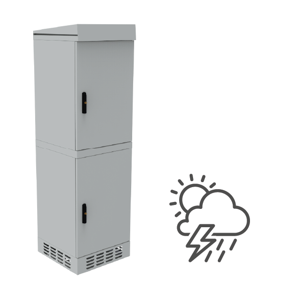 Szafa cechuje się stopniem ochrony IP54, jest przystosowana do wykorzystania na zewnątrz budynków. Konstrukcja jest zabezpieczona przed wnikaniem wody i pyłów. Jest to szafa wolnostojąca, możesz ją odpowiednio zakotwić do podłoża (np. betonowego), osadzić na studni telekomunikacyjnej lub na postumencie (sprzedawany osobno).