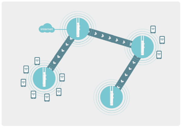 Urządzenia EAP Omada z technologią Mesh automatycznie wybierają najlepszą trasę dla przesyłanych danych, aby szybko i wygodnie zwiększyć zasięg twojej sieci bezprzewodowej.