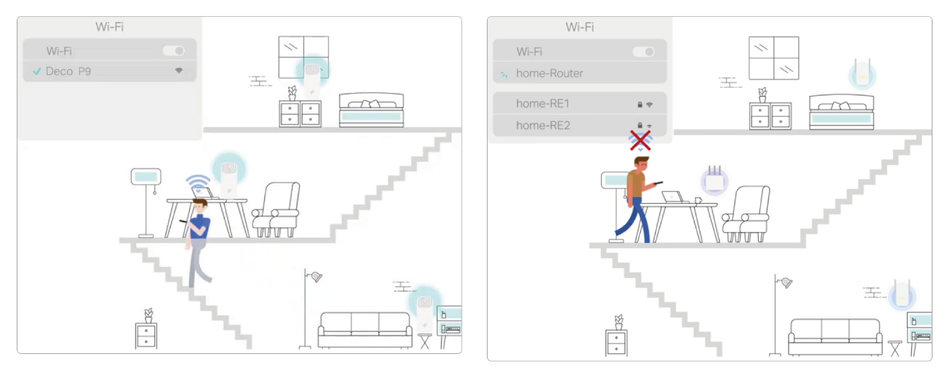 Deco P9 może stworzyć sieć Mesh z każdym innym modelem Deco. Aby zwiększać zasięg sieci, wystarczy dodawać do niej kolejne urządzenia Deco.