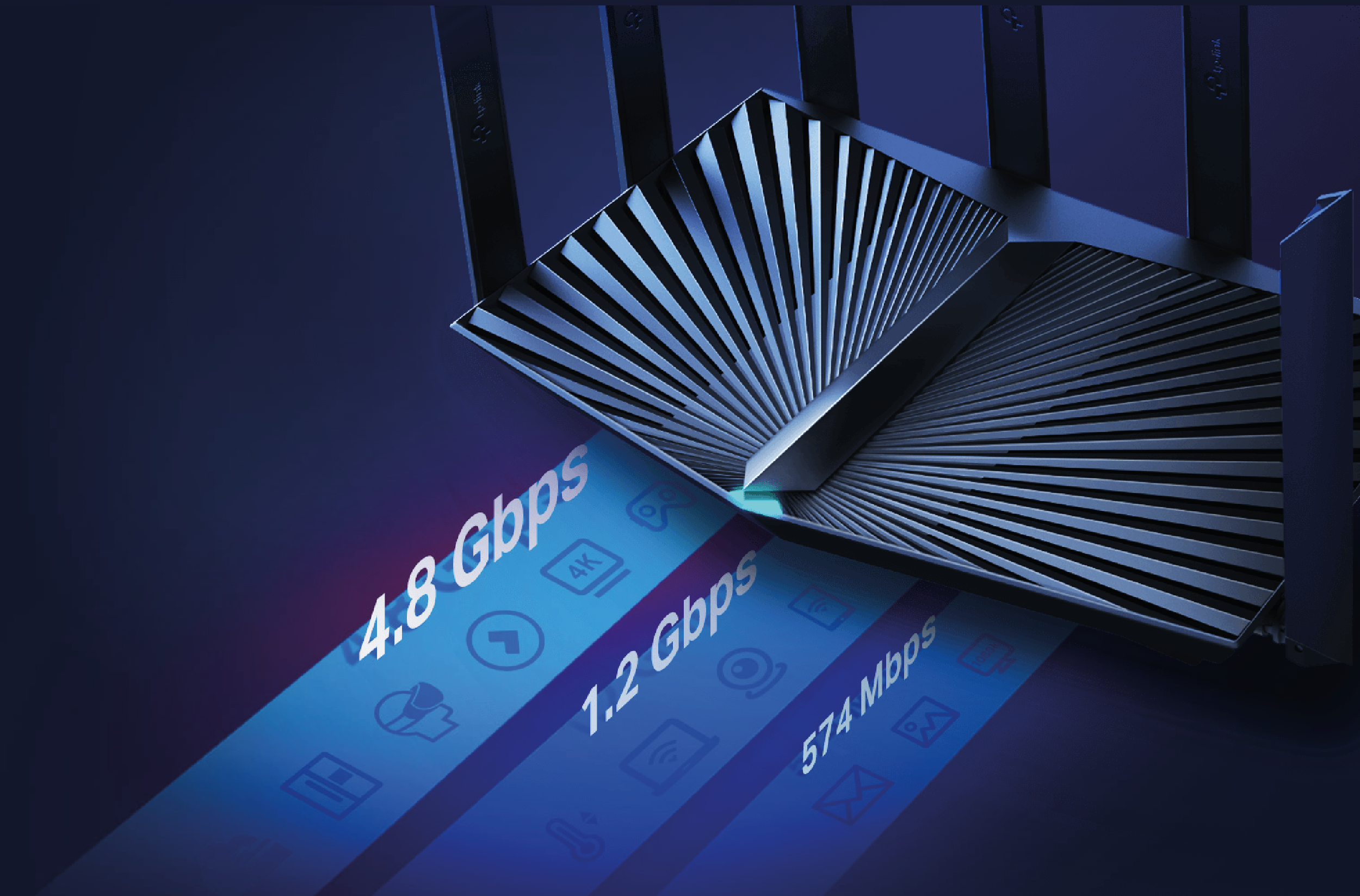 Dzięki technologii tri-band i Wi-Fi 6 Archer AX90 zapewnia możliwość jednoczesnej transmisji danych poprzez osiem strumieni, co pozwala na komunikację z wieloma urządzeniami w tym samym momencie. Osiem wydajnych anten nie służy wyłącznie do doprowadzania sygnału sieci do każdego pomieszczenia w Twoim domu, to także element dekoracyjny.