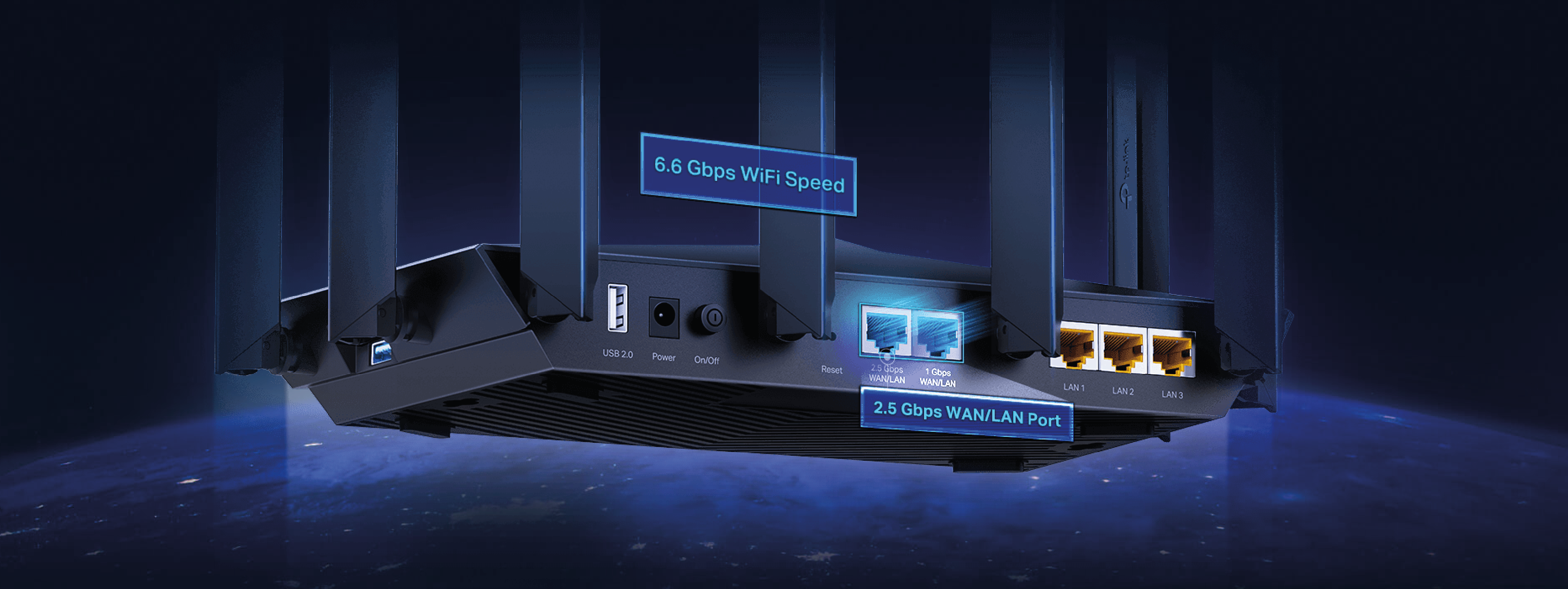 Archer AX90 zapewnia połączenia bezprzewodowe o imponującej prędkości 6,6 Gb/s, ale to nie koniec jego możliwości. Wyposażenie routera w port 2,5 Gb/s oraz port 1 Gb/s daje do dyspozycji także połączenia przewodowe. Prędkości gigabitowe oferowane przez dostawcę usług internetowych nie są zatem blokowane ograniczonymi możliwościami sprzętu. Bez problemu przekroczysz barierę 1Gb/s, a Twoje urządzenia będą mogły pracować z najwyższą wydajnością. Dwa porty LAN/WAN dają szerokie możliwości konfiguracji — dzięki temu możesz dostosować ustawienia sieci do swoich potrzeb.