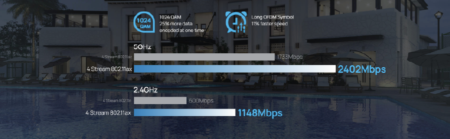 | Prędkość transmisji | • 5 GHz: do 2402 Mb/s • 2,4 GHz: do 1148 Mb/s |