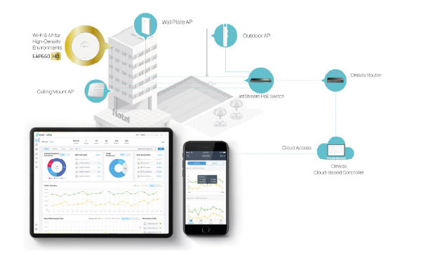 | Zarządzanie centralne | • Kontroler Omada oparty na Chmurze • Kontroler sprzętowy Omada (OC300) • Kontroler sprzętowy Omada (OC200) • Kontroler programowy Omada |