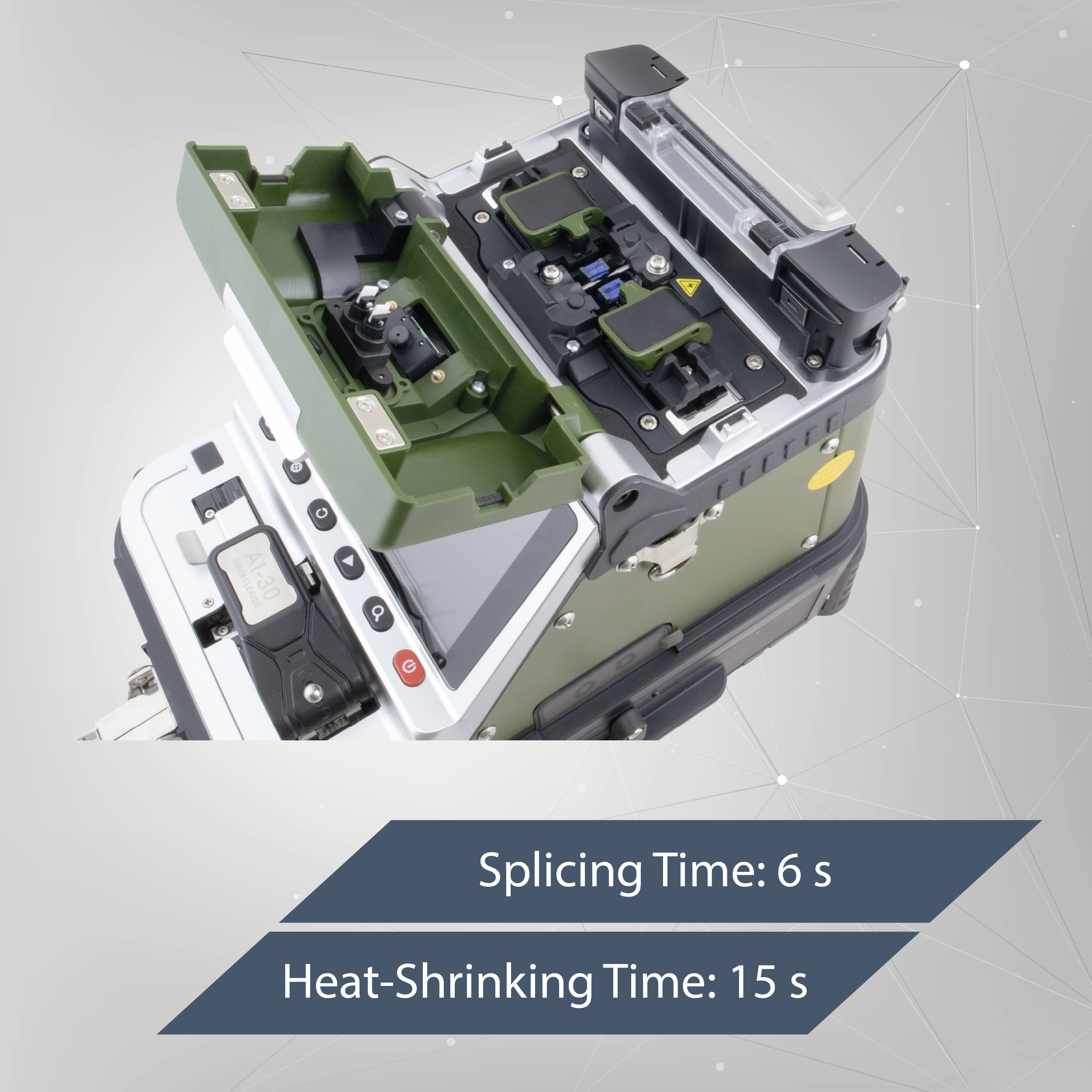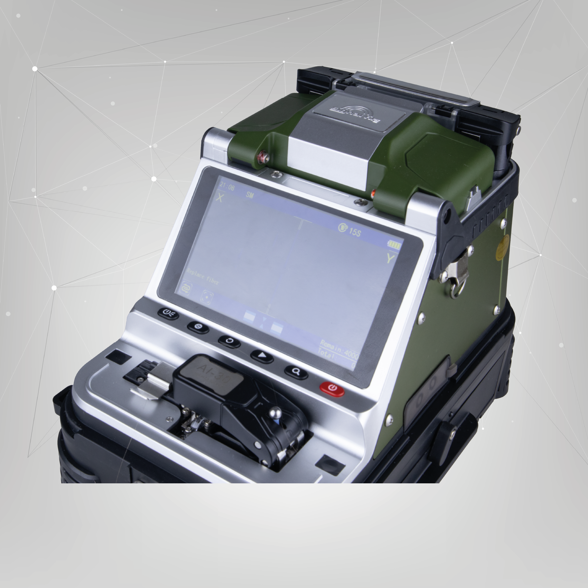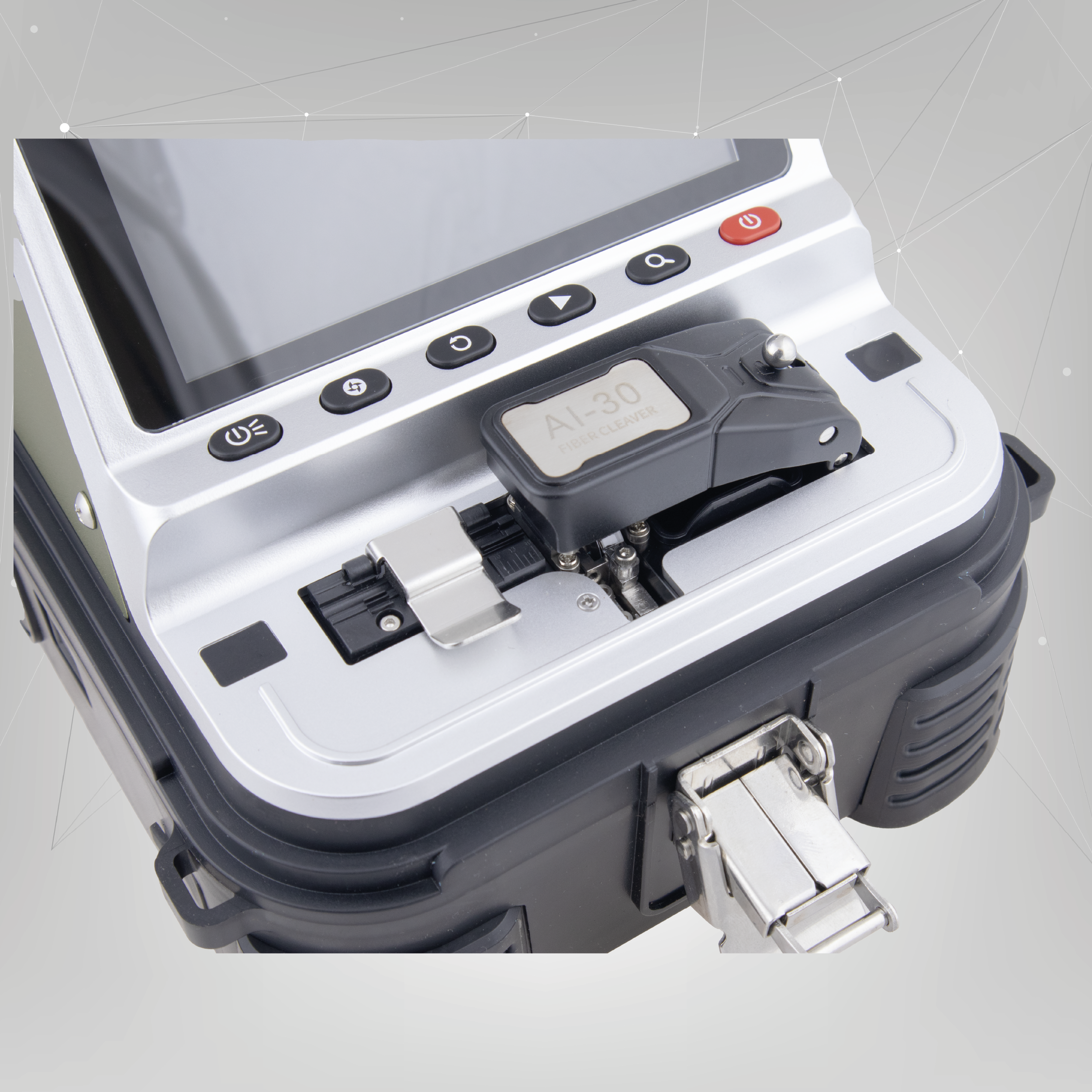 AI-30 posiada wbudowany miernik mocy optycznej oraz wizualny lokalizator uszkodzeń. Złącza znajdują się z boku obudowy, w łatwo dostępnym miejscu. Miernik obsługuje fale o długości 850, 1300, 1310, 1490, 1550 i 1625 nm, umożliwi przeprowadzenie podstawowej diagnostyki po wykonaniu spawów. Wizualny lokalizator uszkodzeń cechuje się mocą 15 mW, narzędzie pozwoli ci sprawdzić ciągłość włókna na krótką odległość.