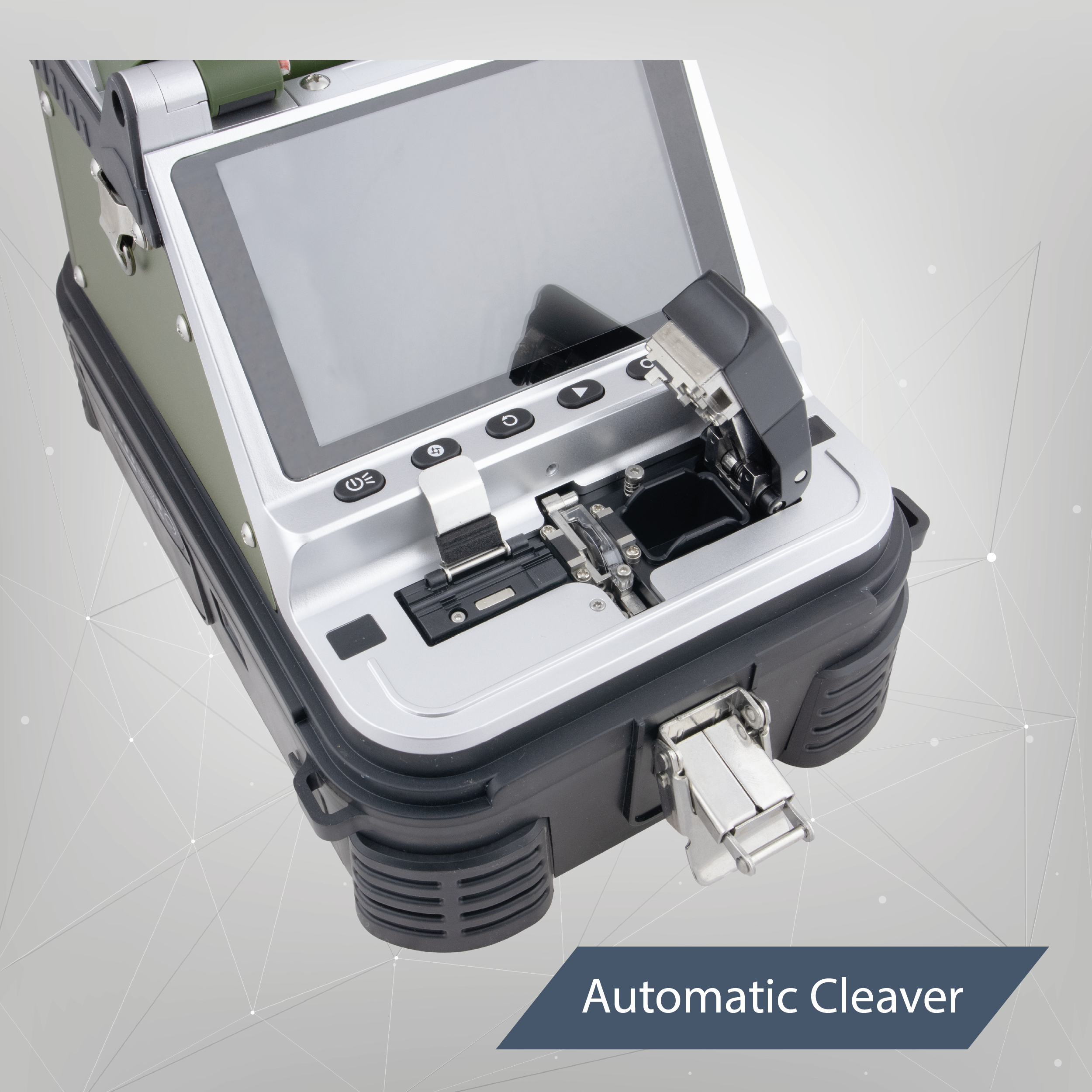 W korpus spawarki został wbudowany nóż (cleaver) do cięcia włókien światłowodowych. Działa w pełni automatycznie, po dociśnięciu pokrywy następuje cięcie, po otwarciu pokrywy nóż wraca do pozycji wyjściowej. Nóż zintegrowany ze spawarką znacznie zwiększa wygodę użytkowania, przygotowane i docięte włókno od razu możesz przełożyć do holdera, który znajduje się w niewielkiej odległości.