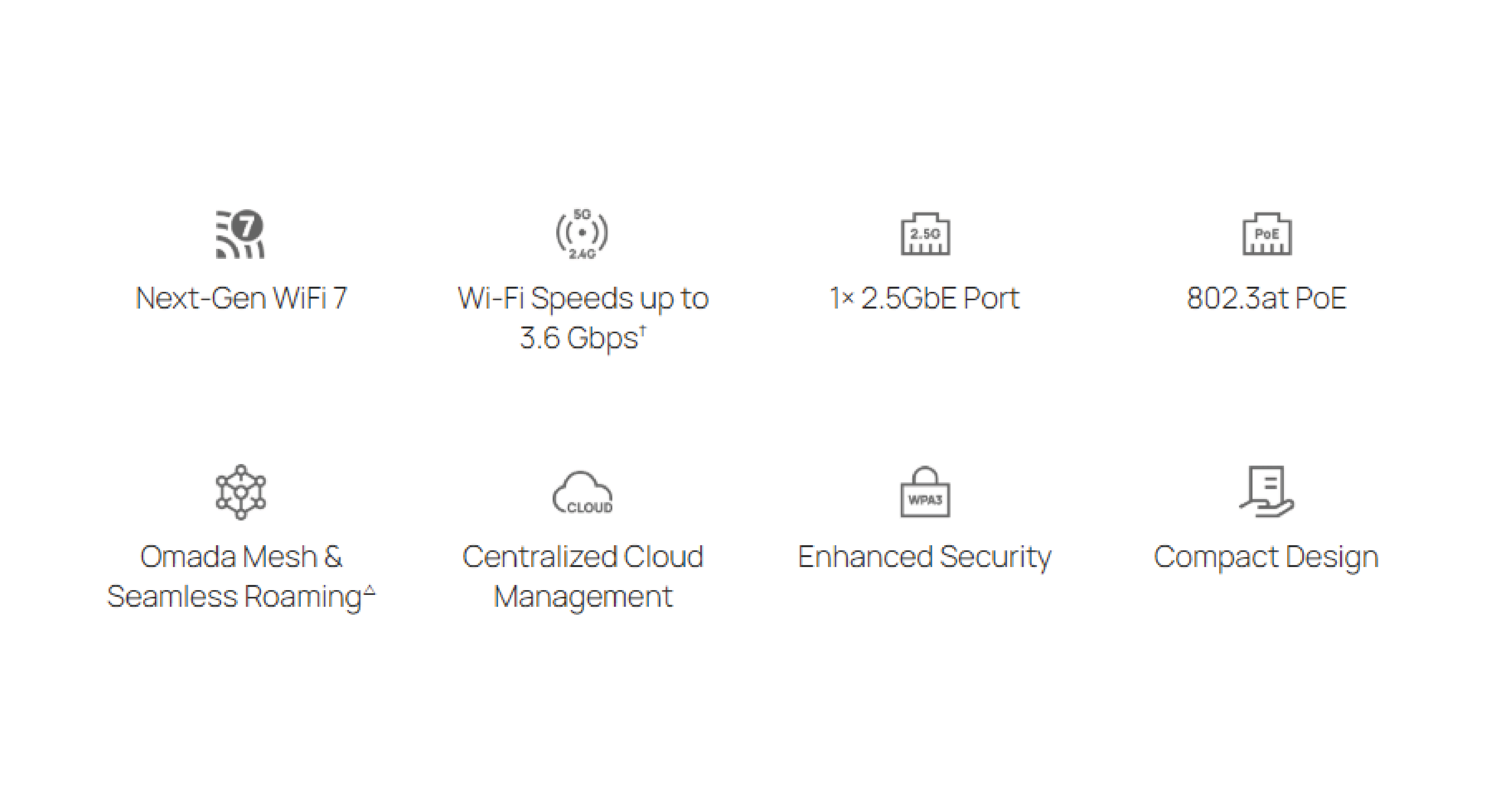 Port Ethernet o prędkości 2,5Gb/s zastosowany w EAP723 zapewnia wielogigabitową wydajność dla szybkiego Wi-Fi.
