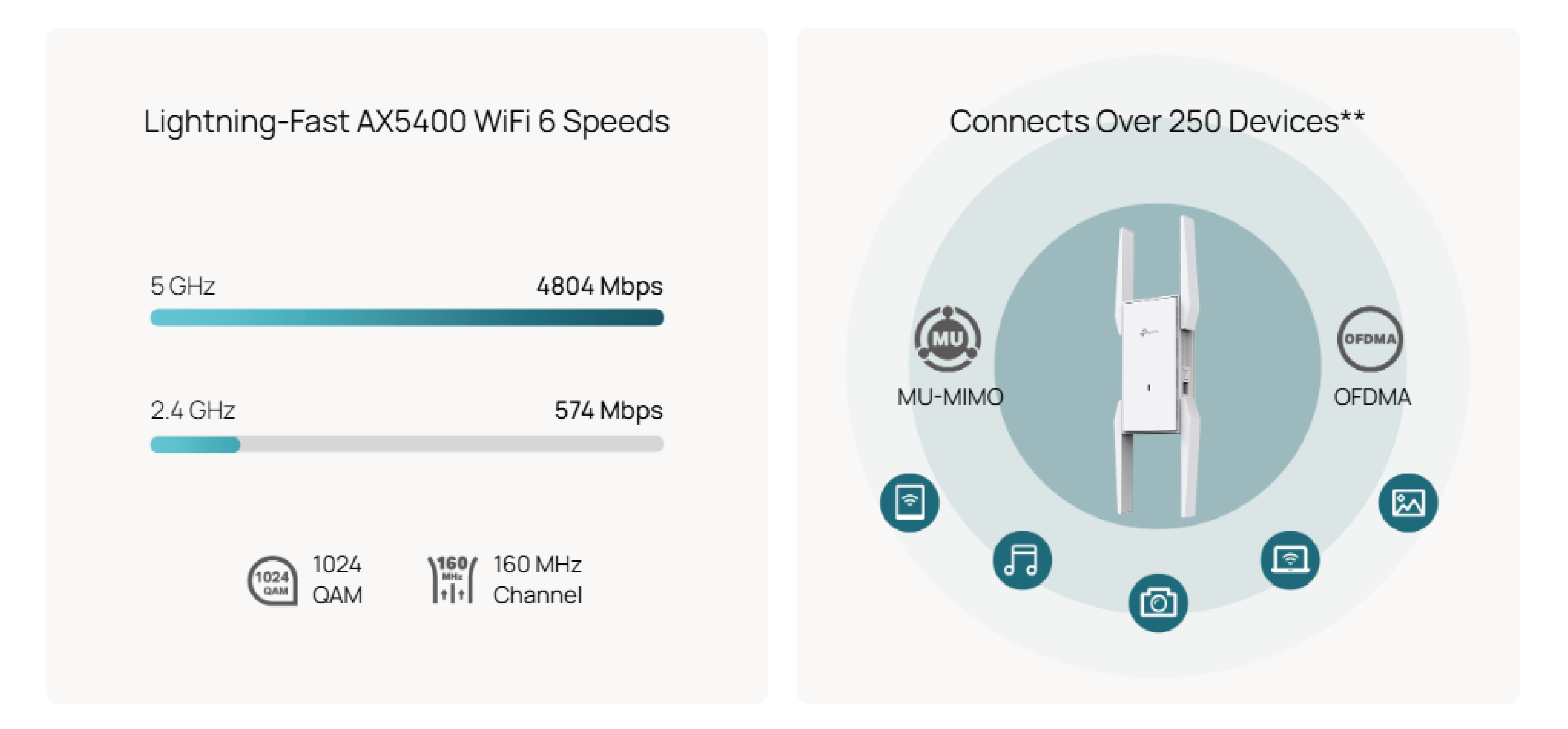 Prędkość transmisji | 5 GHz: do 4804 Mb/s 2,4 GHz: do 574 Mb/s |