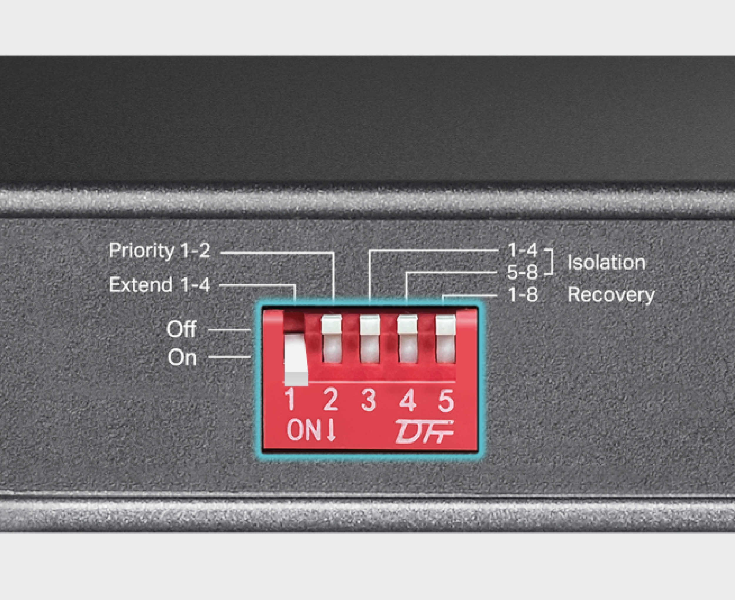Tryb Extend (Porty 1-4, do 250m transmisji zasilania PoE i danych)