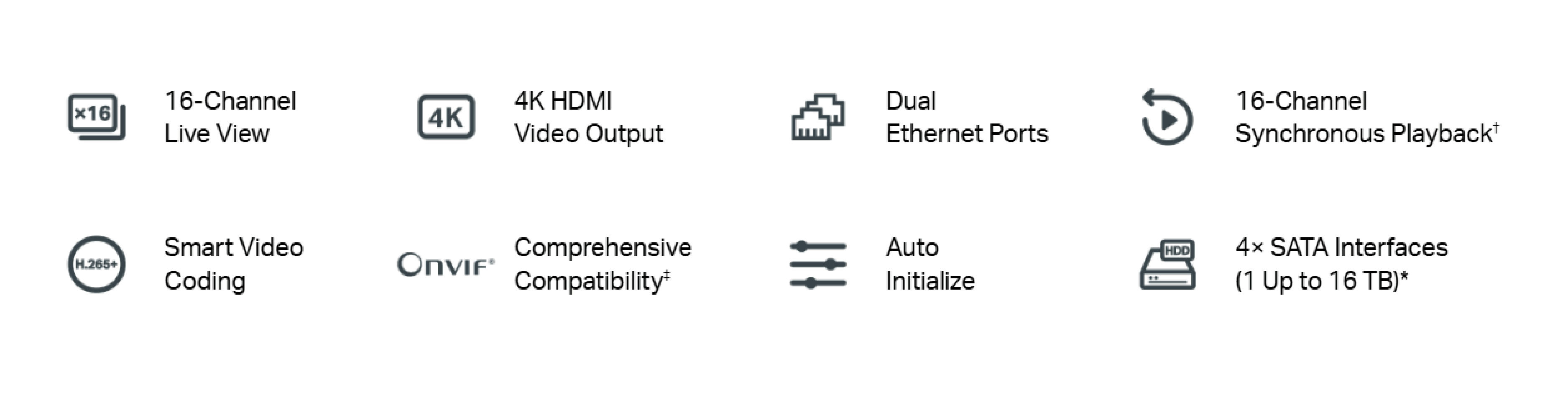 TP-Link VIGI NVR4016H to rejestrator IP przeznaczony do profesjonalnego systemu VIGI. Obsługuje 16 kanałów o maksymalnej rozdzielczości 8 Mpix (4K), jest wyposażony w cztery złącza SATA, do których możesz podłączyć dyski twarde o łącznej pojemności do 64 TB (16 TB na dysk).