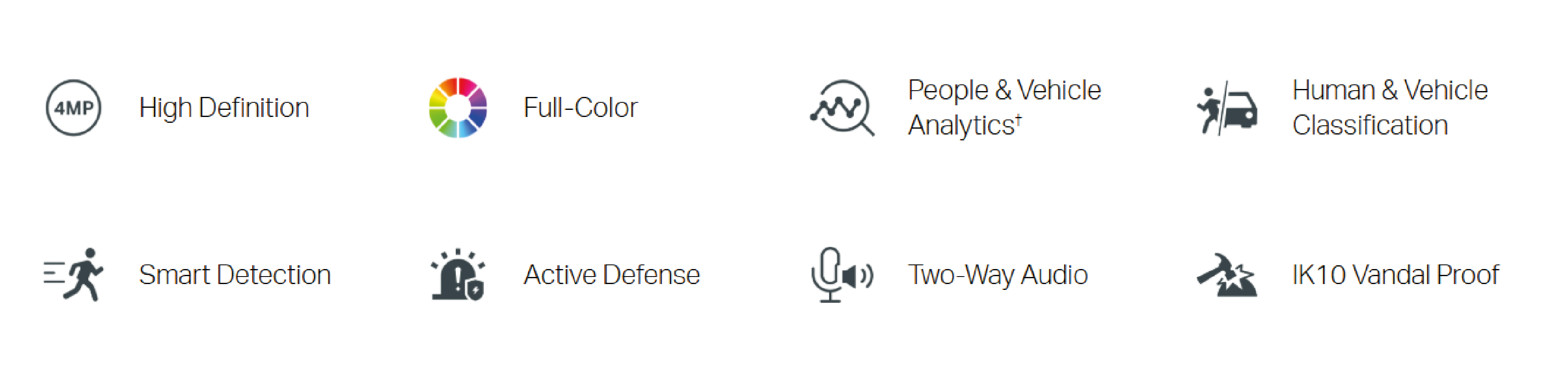 - Smart IR: Dostosowuje dynamicznie doświetlenie podczerwone, aby zapobiegać nadmiernemu oświetleniu i odblaskom, zwiększając w ten sposób widoczność na różnych odległościach i wyraźniejszy obraz.