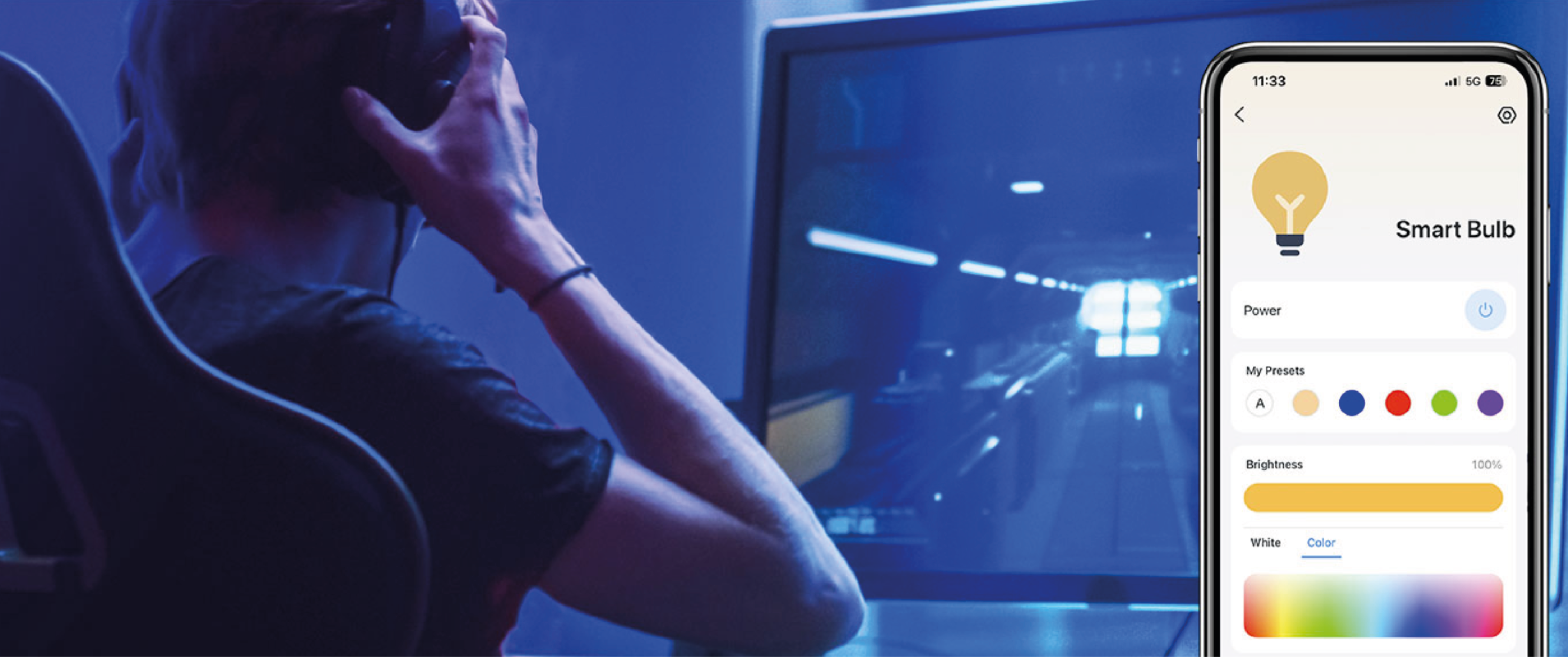 Nie trudź się otwieraniem aplikacji lub wzywaniem asystenta głosowego. Po prostu kliknij przycisk i ciesz się szybkim sposobem kontroli Twojego oświetlenia Smart.*