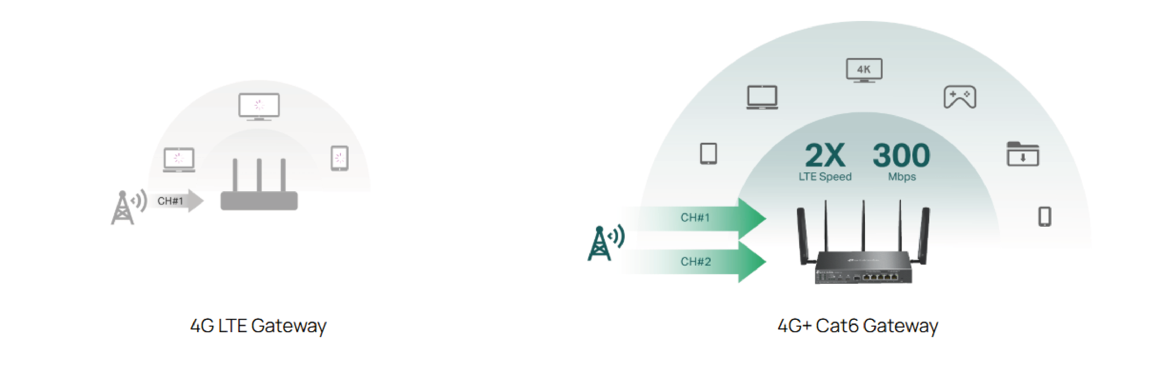 ER706WP-4G łączy w sobie dostęp do internetu 4G, technologię Wi-Fi 6 i 4 gigabitowe porty PoE+.