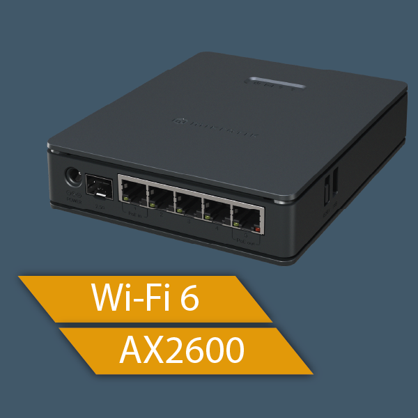 MikroTik hAP ax S to router umożliwiający stworzenie transmisji bezprzewodowej Wi-Fi 6. Wspiera protokoły IEEE 802.11 b/g/n/ax w paśmie 2,4 GHz i IEEE 802.11 a/n/ac/ax w 5 GHz. Maksymalna teoretyczna przepustowość wynosi odpowiednio 574 Mb/s w 2,4 GHz oraz 1803 Mb/s w 5 GHz. Tak dużą prędkość możemy uzyskać dzięki zastosowaniu 3x3 MIMO w paśmie 5 GHz (standardowe routery obsługują 2x2). Urządzenie wyróżnia się wydajnością, posiada dwurdzeniowy procesor ARM o taktowaniu 950 MHz oraz 512 MB pamięci RAM. Router ma preinstalowany system RouterOS v7 z licencją level 4, wspiera zaawansowane funkcje zarządzania, takie jak VLANy, zapory sieciowy, VPN i wiele, wiele innych. Oferowany produkt został wyposażony w 5 gigabitowych portów Ethernet (10/100/1000 Mb/s) oraz 1 slot SFP, który może pracować z prędkością 2,5 Gb/s. Dodatkowo na pierwszym porcie Ethernet znajduje się wejście zasilania PoE, a na ostatnim wyjście. Umożliwi ci to proste podłączenie dodatkowego urządzenia, np. punktu dostępowego, bez konieczności stosowania zasilacza lub switcha. Dodatkowy atut stanowi wbudowany port USB oraz anteny o dużym zysku energetycznym (5,5 dBi w 2,4 GHz / 8 dBi w 5 GHz).