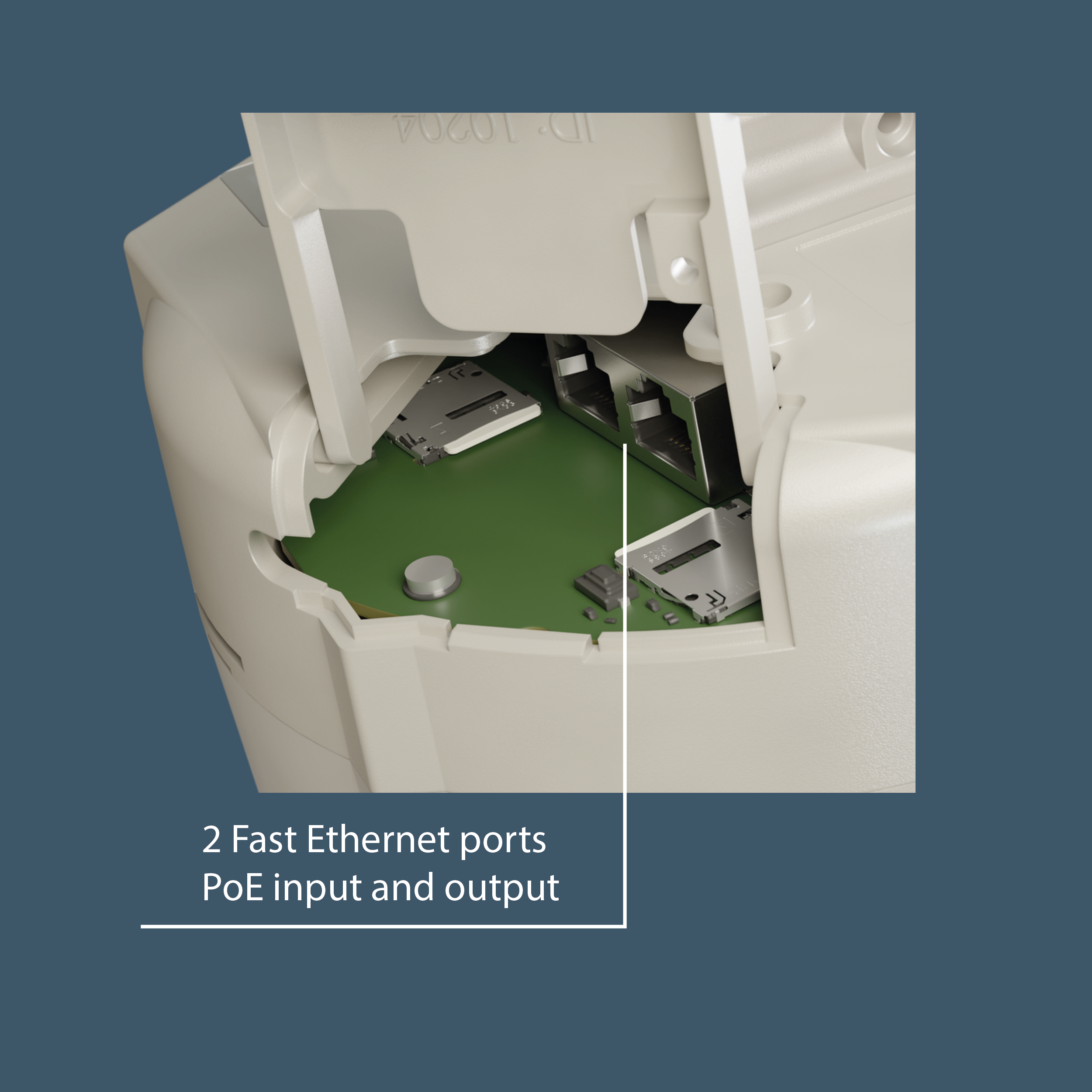 2 porty fast Ethernet, wejście i wyjście PoE