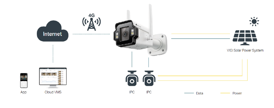 Kamera InSight S345-4G oferuje 3 porty LAN, dzięki którym możliwe jest podłączenie nawet 3 dodatkowych urządzeń. Jest to idealne rozwiązanie do połączenia z systemem zasilania energią słoneczną, aby wyeliminować potrzebę stosowania dodatkowego okablowania.