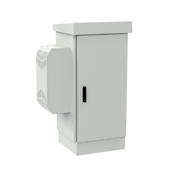 Szafa ma konstrukcję dwupłaszczową - posiada podwójne ściany, pomiędzy nimi znajduje się powietrze, które jest dodatkowym izolatorem termicznym chroniącym sprzęt znajdujący się wewnątrz. Wraz z produktem otrzymasz zintegrowany klimatyzator o mocy 720 W. Klimatyzator umożliwia schłodzenie wnętrza szafy, zapobiega przegrzewaniu się urządzeń oraz wydłuża ich żywotność.
