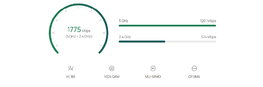 2,4 GHz: do 574 Mb/s *Uwaga: Mogą występować ograniczenia związane z krajem użytkowania produktu |