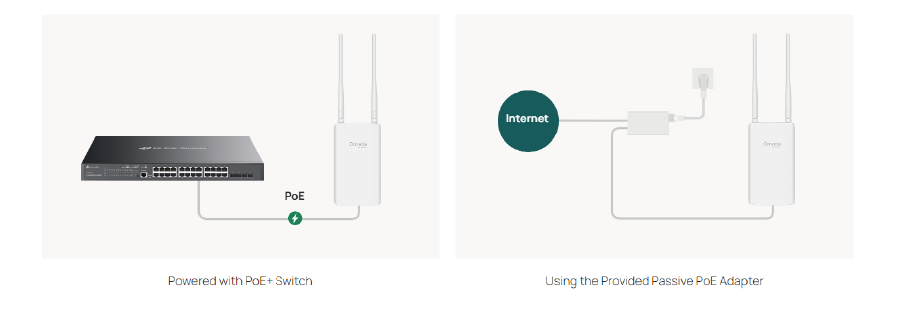 | Pobór mocy | 802.3at (PoE+): 15,8W, nadajnik 2,4GHz 2×2, nadajnik 5GHz 2×2, prędkość łącza przewodowego może wynosić maksymalnie 1Gb/s Tryb bezczynności: 4,8W (PoE) |