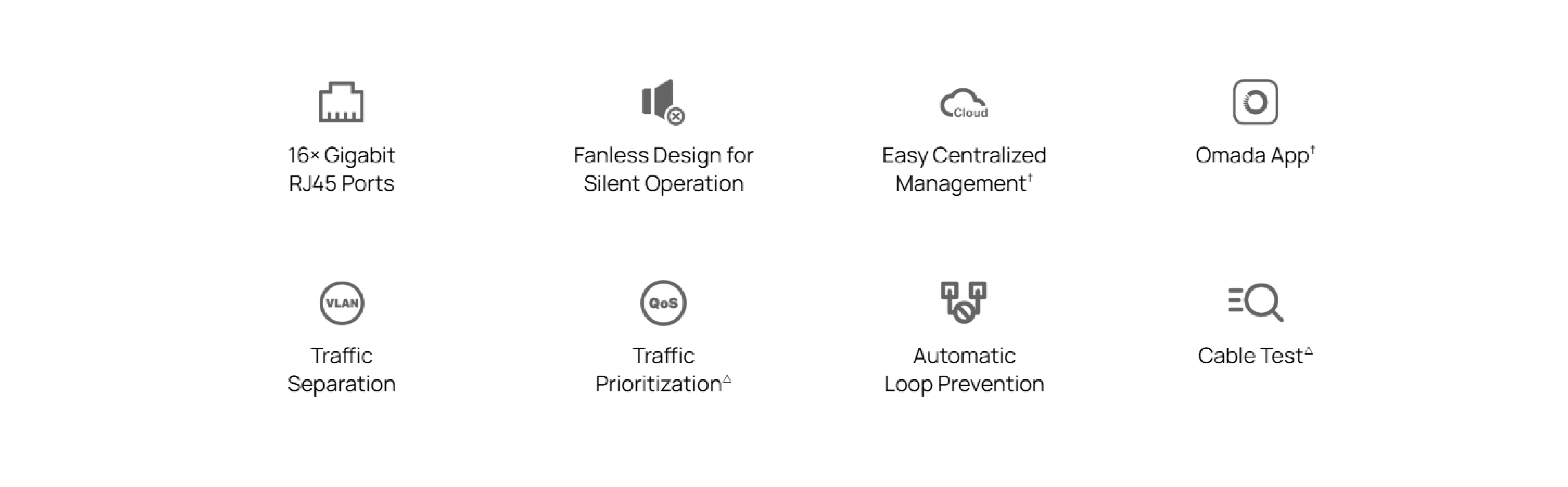 | Aplikacja Omada | Tak. Wymaga użycia Kontrolera sprzętowego Omada, Kontrolera Omada opartego na Chmurze lub Kontrolera programowego Omada. |