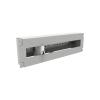 Panel frontowy został przystosowany do zamontowania 24 adapterów SC Duplex lub LC Quad. Wewnątrz przełącznicy znajdziesz miejsce do zamontowania tacki spawów oraz odpowiednie przetłoczenia, do których można przymocować zapas kabla korzystając z opasek zaciskowych. Należy stosować tacki, które posiadają otwór na śrubę. Z tyłu znajdują się cztery otwory do przeprowadzenia okablowania. Dwa z nich zostały fabrycznie zabezpieczone dławikami.