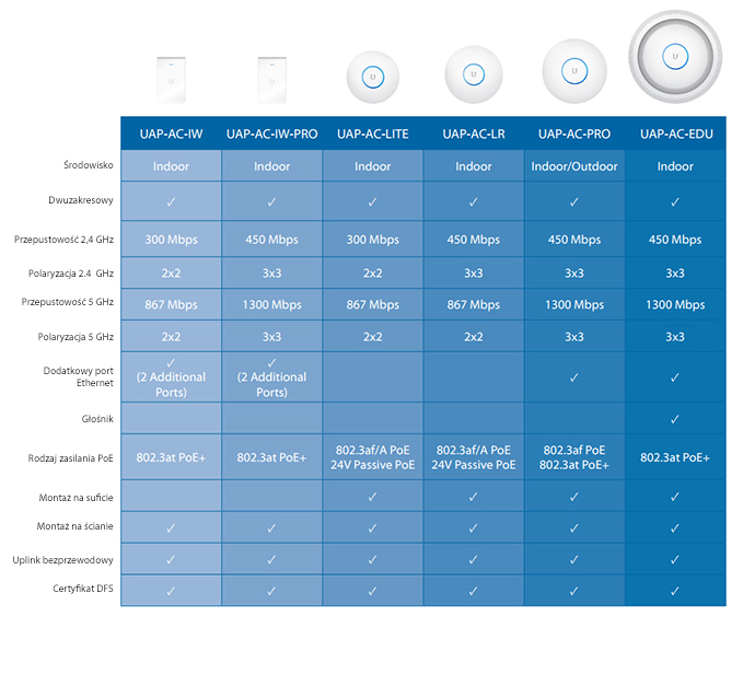 UniFi AP AC Lite to punkt dostępowy firmy Ubiquiti pracujący w standardzie ac. Zaprojektowany został do wykorzystania wewnątrz budynków, bardzo dobrze sprawdzi się w sieciach, w których znajdują się inne urządzenia korzystające z oprogramowania UniFi. Nowy produkt Ubiquiti posiada gigabitowy port Ethernet, może transmitować sieć z przepustowością do 300 Mb/s w 2,4 GHz i 867 Mb/s w 5 GHz.
