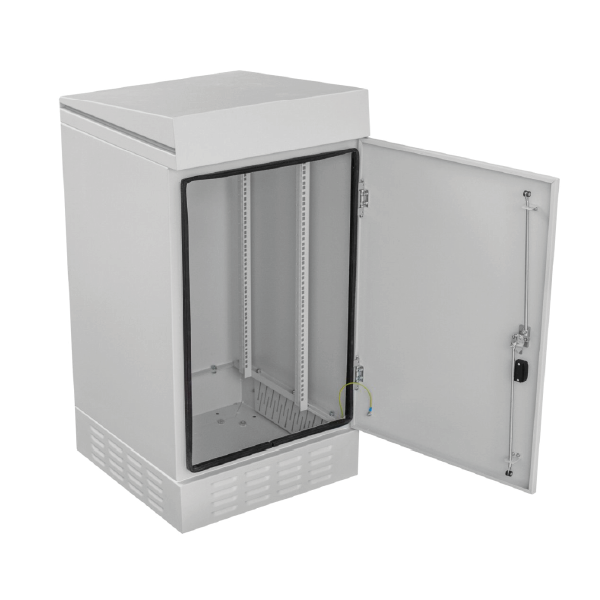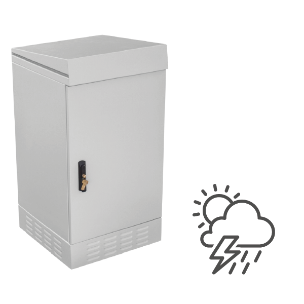 Szafa cechuje się stopniem ochrony IP54, jest przystosowana do wykorzystania na zewnątrz budynków. Konstrukcja jest zabezpieczona przed wnikaniem wody i pyłów. Jest to szafa wolnostojąca, możesz ją odpowiednio zakotwić do podłoża (np. betonowego), osadzić na studni telekomunikacyjnej lub na postumencie (sprzedawany osobno).