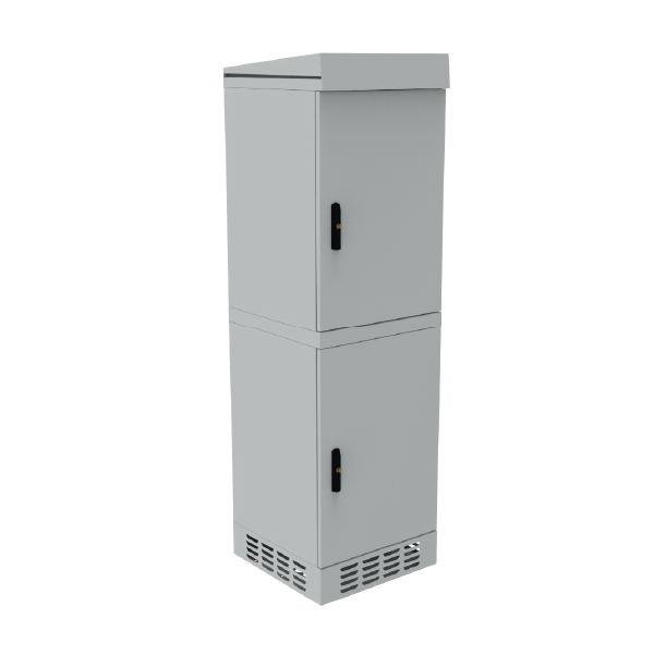 Szafa cechuje się stopniem ochrony IP54, jest przystosowana do wykorzystania na zewnątrz budynków. Konstrukcja jest zabezpieczona przed wnikaniem wody i pyłów. Jest to szafa wolnostojąca, możesz ją odpowiednio zakotwić do podłoża (np. betonowego), osadzić na studni telekomunikacyjnej lub na postumencie (sprzedawany osobno).