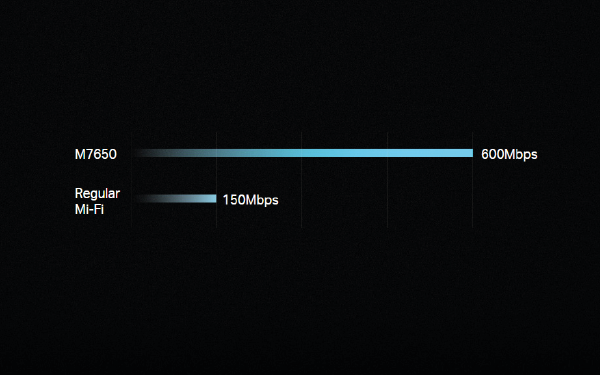 Dzięki sieci najnowszej generacji 4G LTE, M7650 umożliwia pobieranie z prędkością do 600Mb/s, a tym samym oglądanie filmów w jakości HD bez przerw w transmisji, błyskawiczne pobieranie plików i prowadzenie rozmów wideo bez zakłóceń.