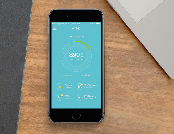 Aplikacja tpMiFi pozwala na zarządzanie urządzeniem M7650 za pomocą połączonych urządzeń z systemem iOS/Android. tpMiFi umożliwia ustanowienie limitów pobierania, kontrolę urządzeń podłączonych do sieci i udostępnianie plików na karcie SD.