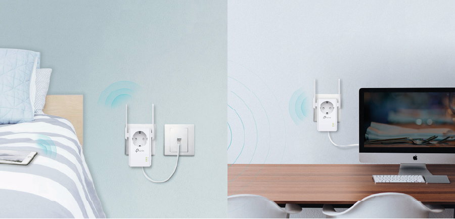 TL-WA860RE to urządzenie stworzone do zwiększania zasięgu i poprawiania sygnału sieci bezprzewodowej. Dwie zewnętrzne anteny dbają o to, aby dostęp do Wi-Fi był możliwy w każdym pomieszczeniu twojego domu, a wszystkie urządzenia mobilne, odtwarzacze multimedialne i komputery miały stałe połączenie ze stabilną siecią.