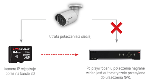 Ciekawą funkcją zastosowaną w wybranych produktach do monitoringu sieciowego marki Hikvision jest funkcja ANR (Automatic Network Replenishment). Usługa ta gwarantuje ciągłość nagrań w przypadku awarii, rozłączenia lub utraty połączenia występującego między kamerą i rejestratorem. System działa na zasadzie automatycznego wykrycia problemu z siecią i bezpiecznego zapisu nagrań na karcie microSD umieszczonej wewnątrz kamery. Po ustaniu awarii nagrania są automatycznie synchronizowane i w przypadku braków rejestrator pobierze brakujące fragmenty bezpośrednio z karty.