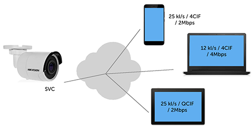 Największą zaletą nowoczesnego kodowania SVC jest jego skalowalność. Cecha ta oznacza, że w pojedynczym strumieniu wizyjnym zawarta jest informacja potrzebna do wydzielenia strumieni o różnych parametrach bez konieczności stosowania dodatkowych operacji dekodowania/kodowania, które wymagają urządzeń o podwyższonej mocy obliczeniowej oraz – co jest nawet ważniejsze – wprowadzają do sygnału spore opóźnienia. Dzięki możliwości stosowania pojedynczego strumienia wizyjnego zamiast kilku niezależnych strumieni obniżone zostaje zapotrzebowanie na pasmo sieciowe.
